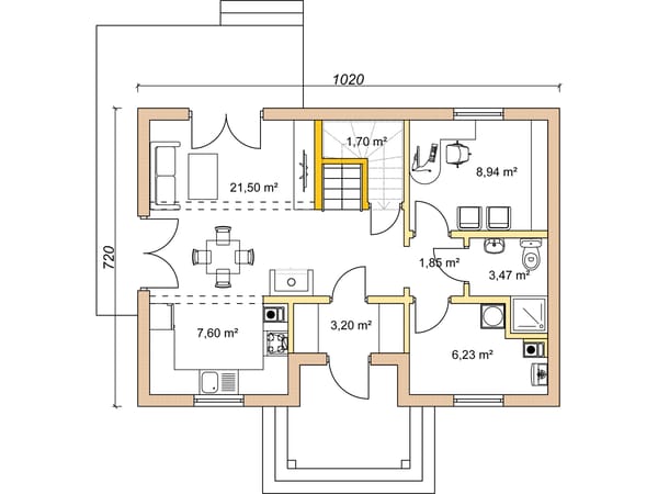 Bratysława to z pozoru niewielki dom, który w środku zaskakuje swoją przestrzennością. Przewidziane pomieszczenia dają pełen komfort i poczucie swobody: Salon z jadalnią, pomieszczenie gospodarcze z pralnią, osobna łazienka i toaleta, dwie garderoby. Aż chce się mieszkać.